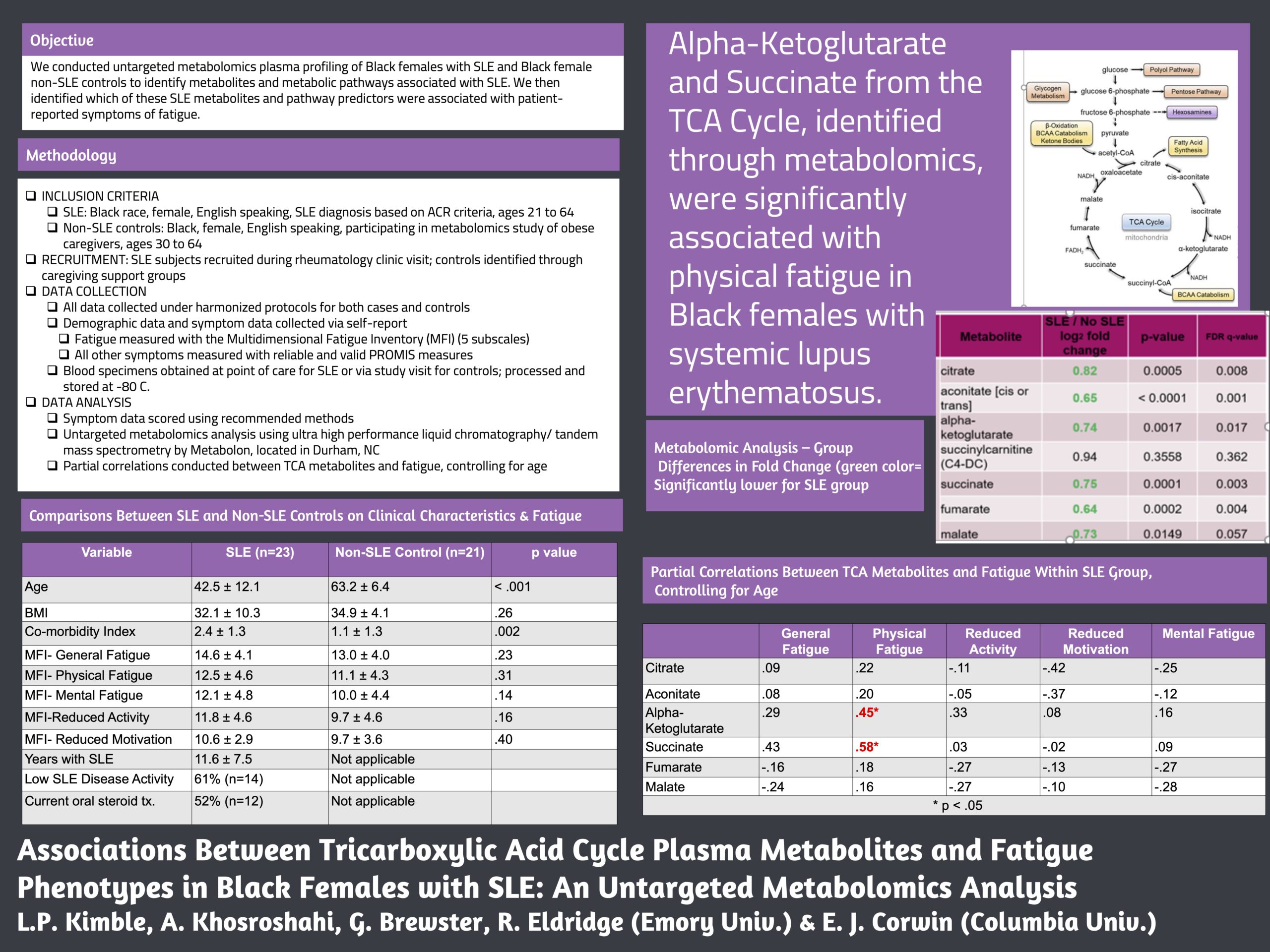 Poster Presentation: Associations Between Tricarboxylic Acid Cycle Plasma Metabolites and Fatigue Phenotypes in Black Females with Systemic Lupus Erythematosus: An Untargeted Metabolomics Analysis